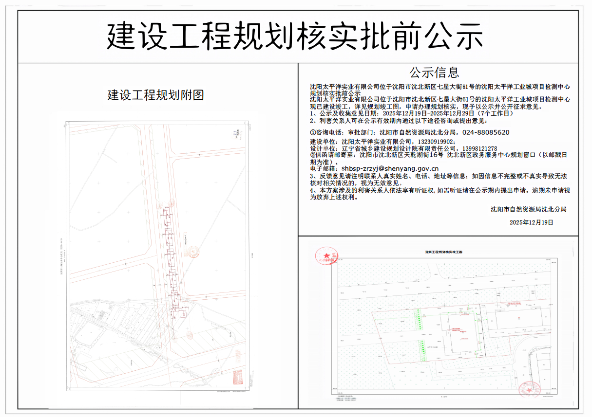 ******有限公司位于沈陽市沈北新區(qū)七星大街61號的沈陽太平洋工業(yè)城項(xiàng)目檢測中心規(guī)劃核實(shí)批前公示.pdf